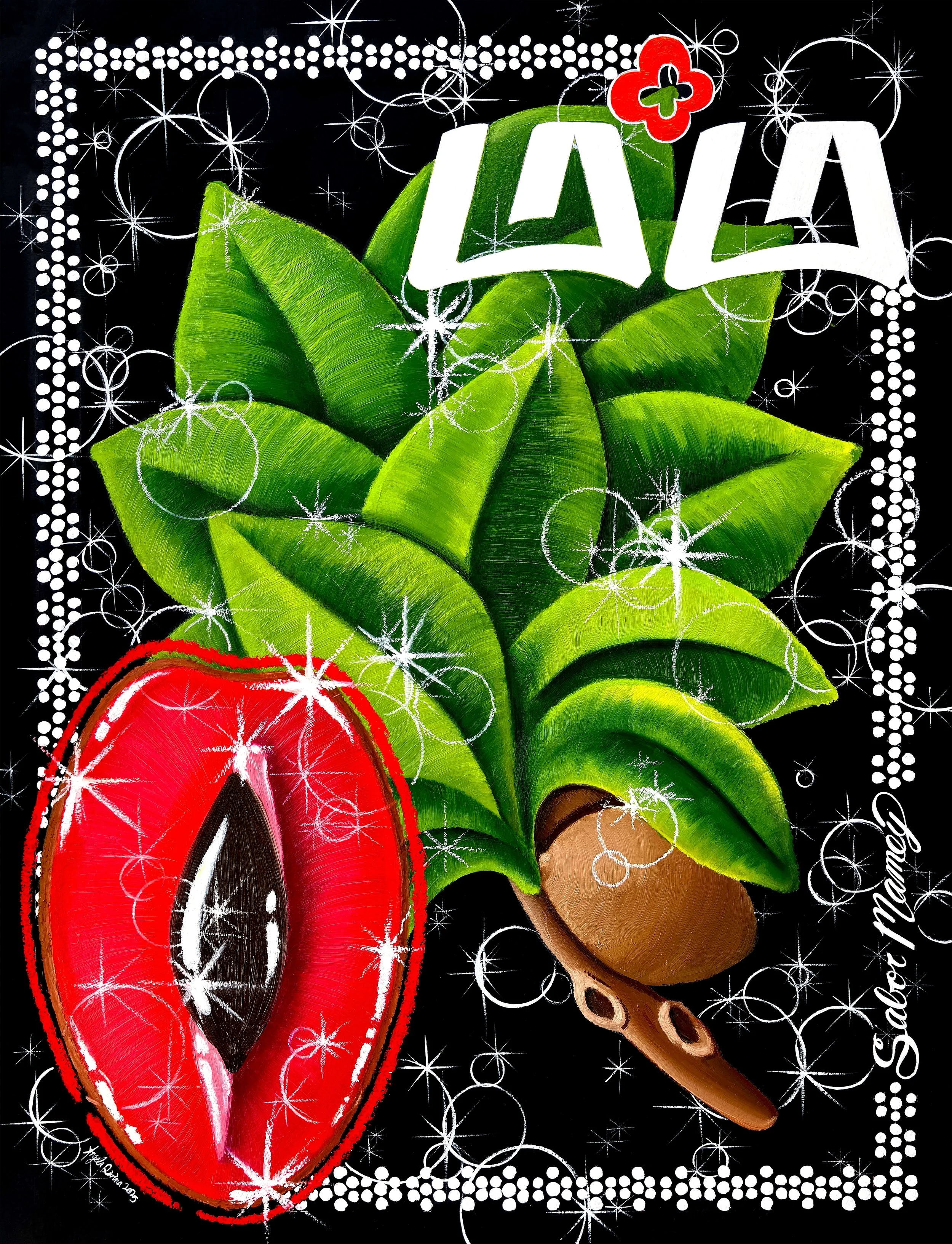 mixed media (gouache, vinyl paint, oil paint, oil pastel, colored pencil, and foil on paper)